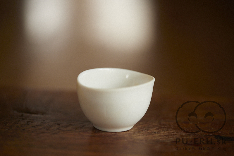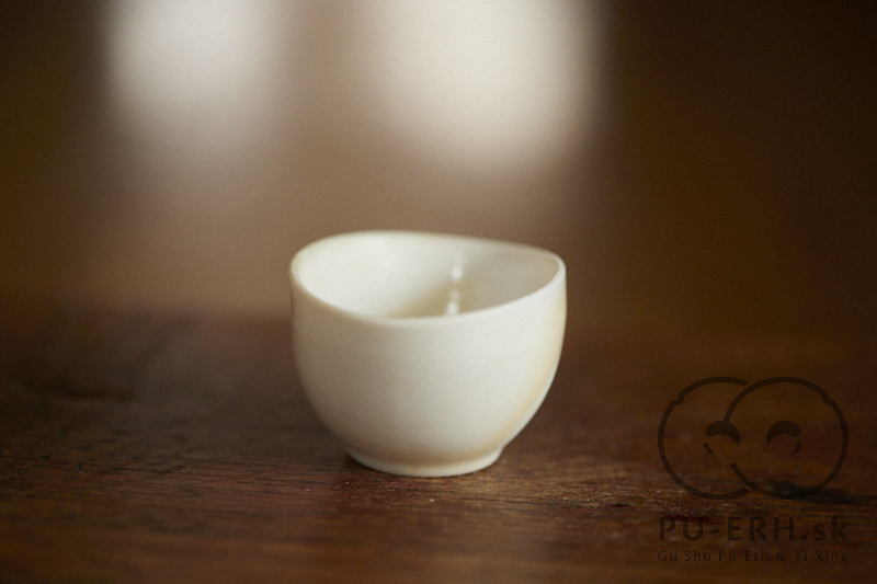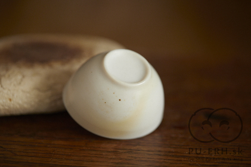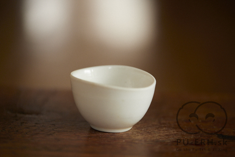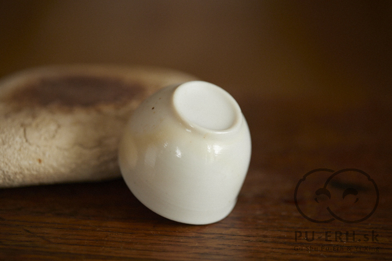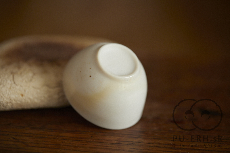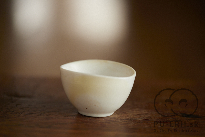 A ming porcelain woodfired teacup with a subtle glass glaze drop flow, wood fired at cone 12* .