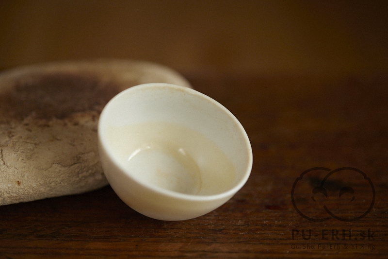 Porcelánová miska s malými popolovými usadeninami drevo výpalu.