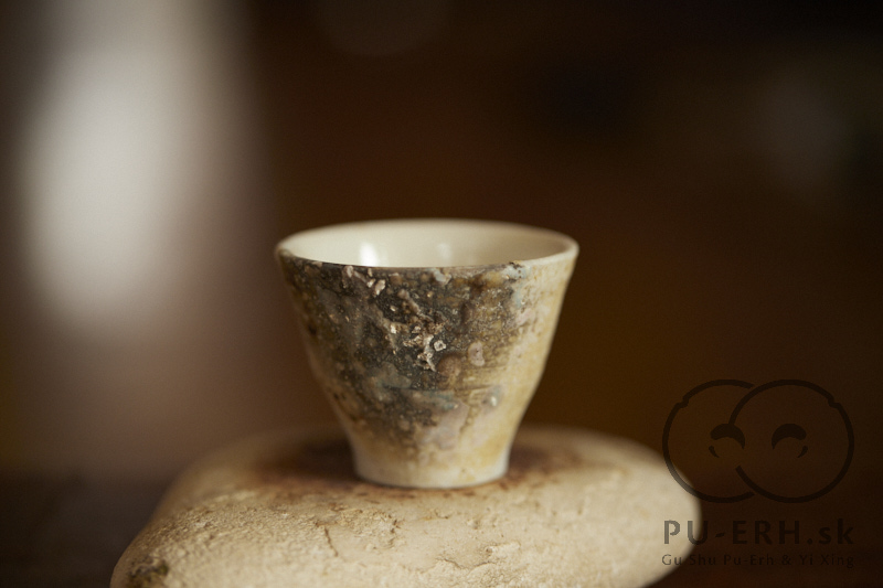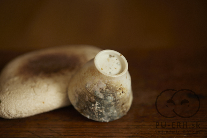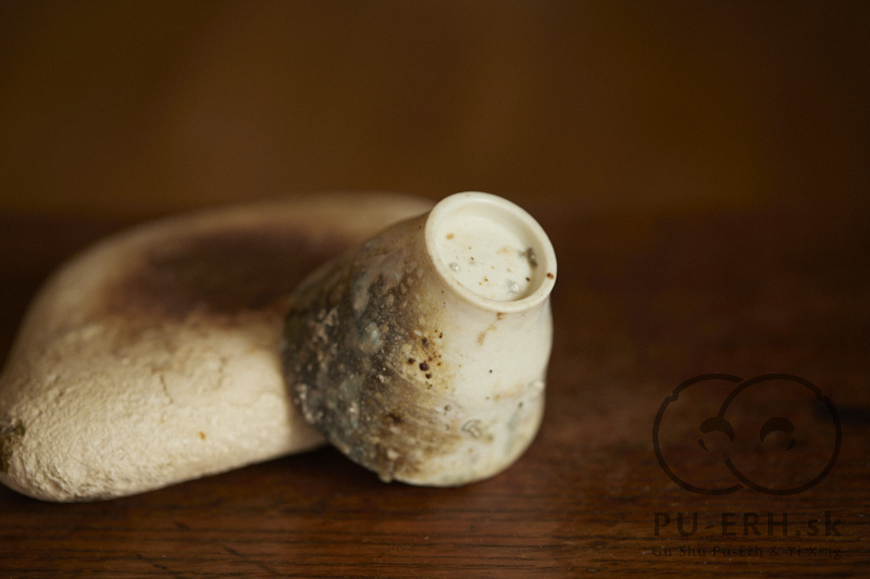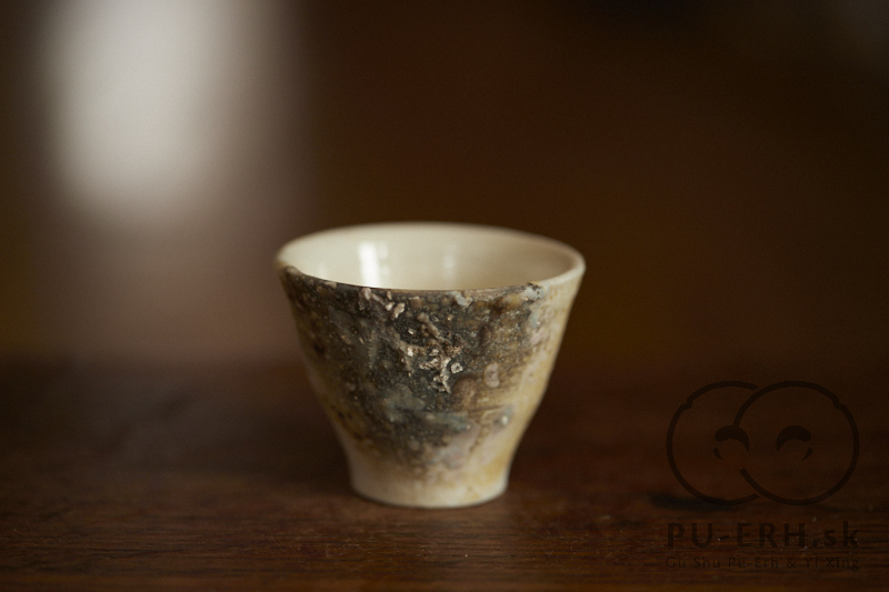 An porcelain teacup with carbon trapping and heavy ashes on outside surfice.