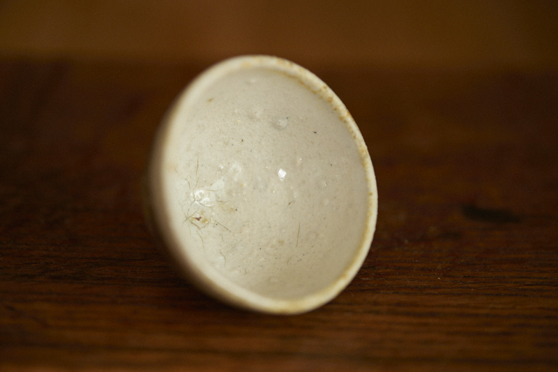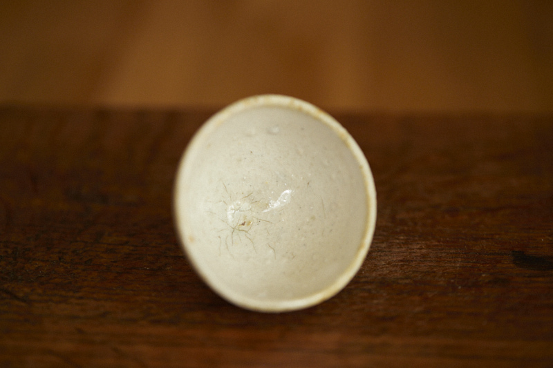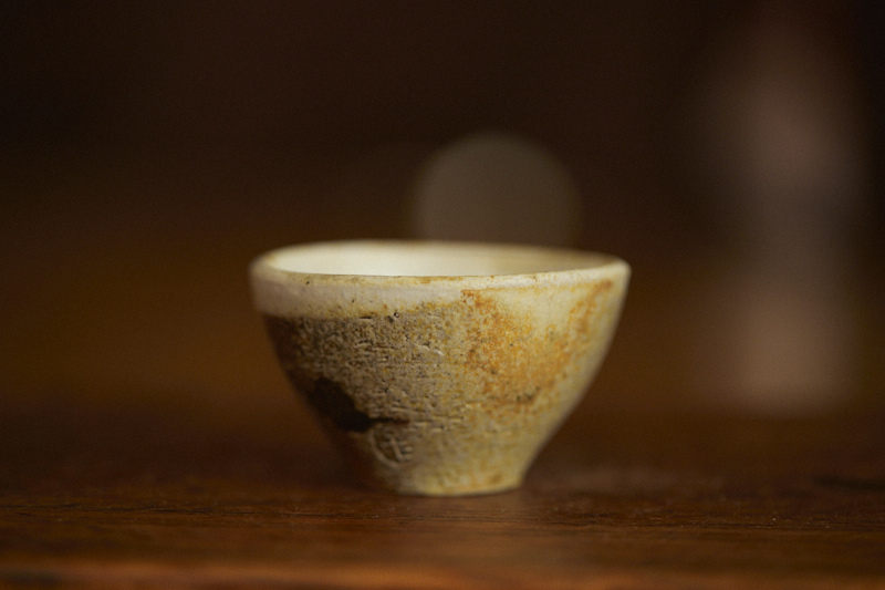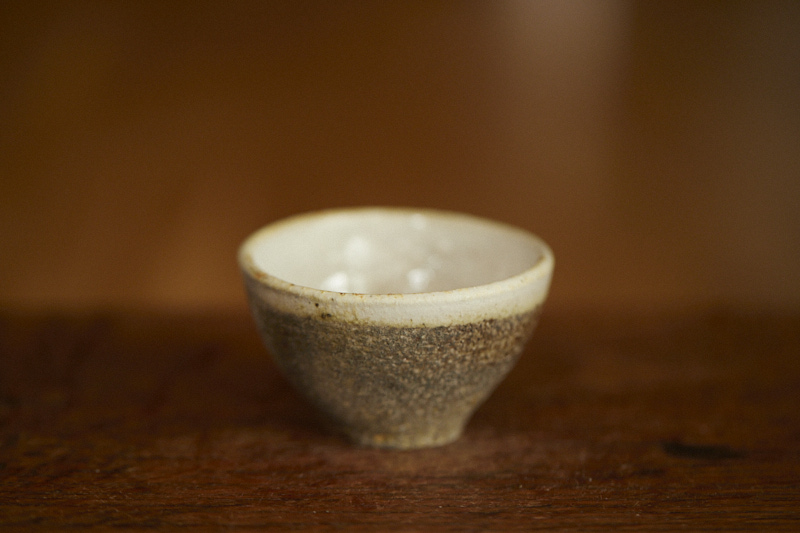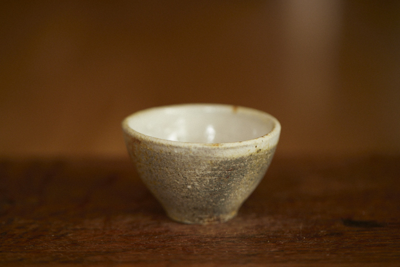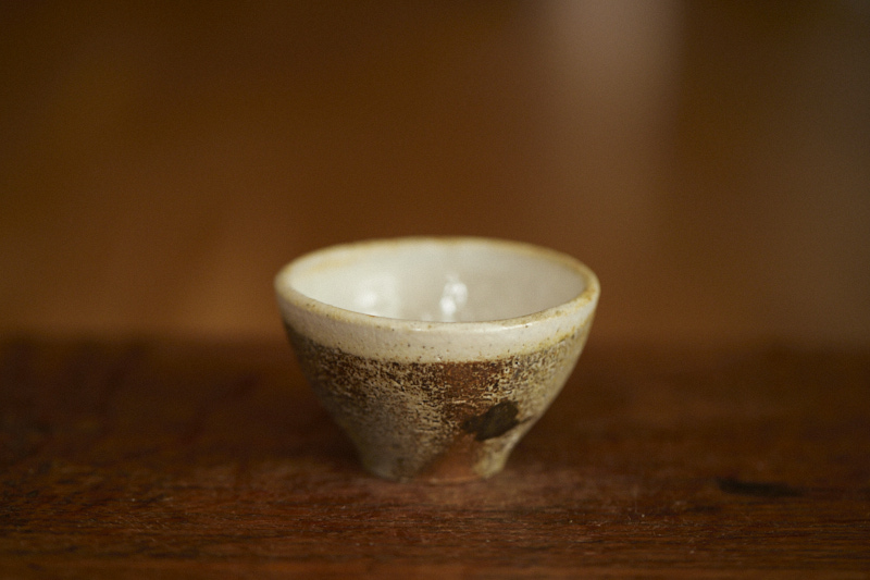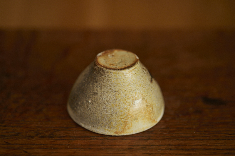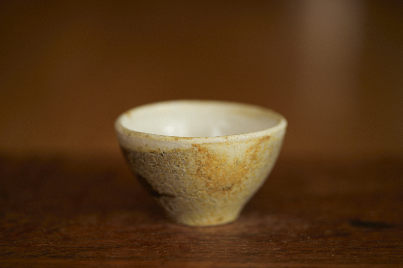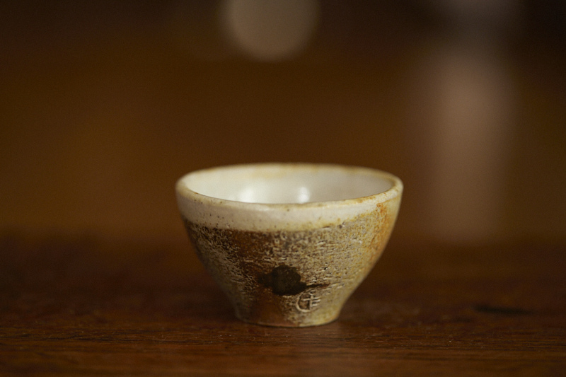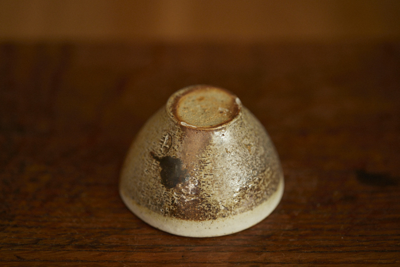 A shino glaze on iron bearing clay body, wood fired at cone 12*. A beautyful ash build up almost like vintage woodfired teacup.